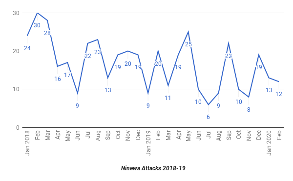 There were 13 incidents in January and 12 in February in Ninewa. A mukhtar’s